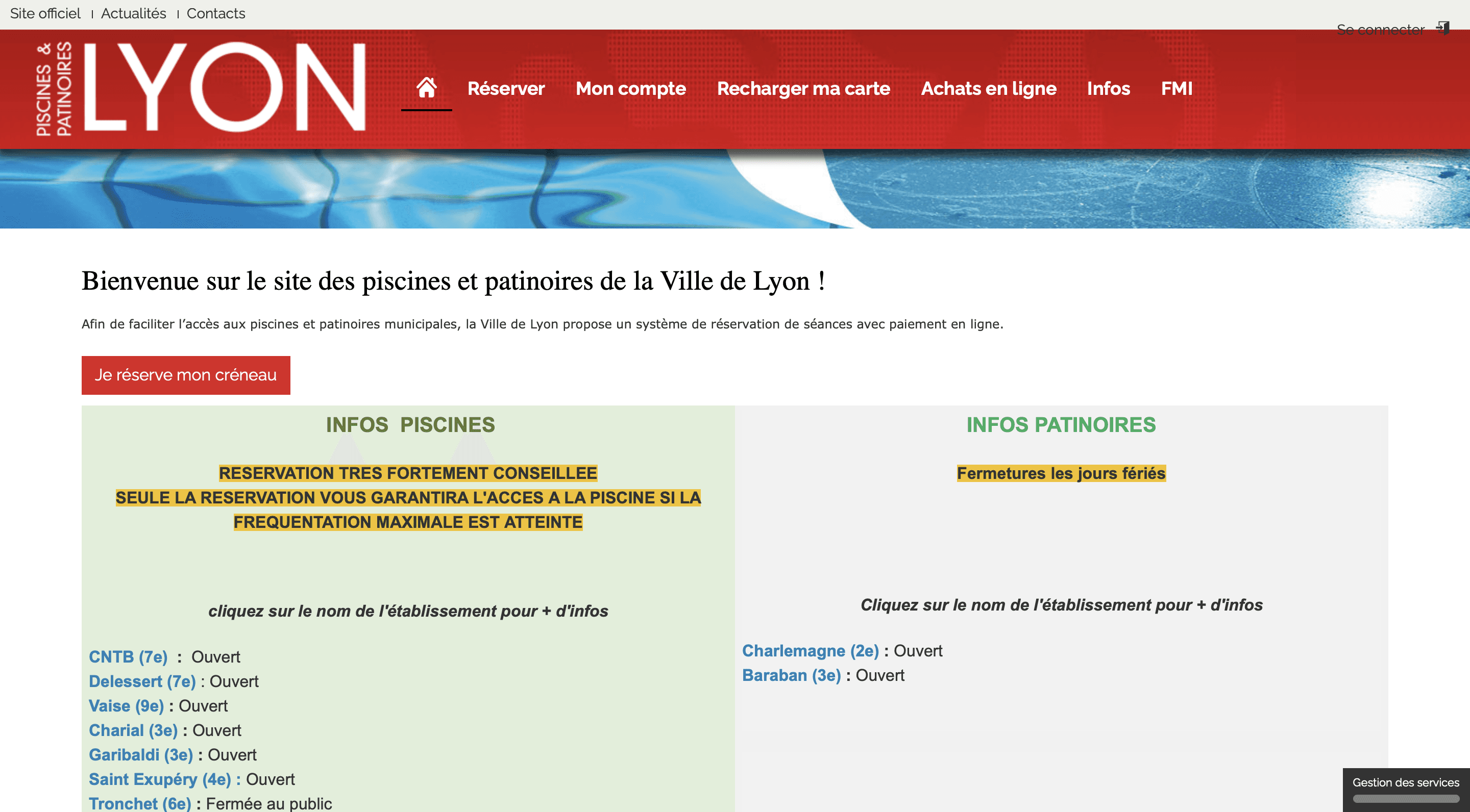 The Ville de Lyon's website for public pools and ice rinks was outdated and visually inconsistent, making it difficult for users to find information or book reservations.